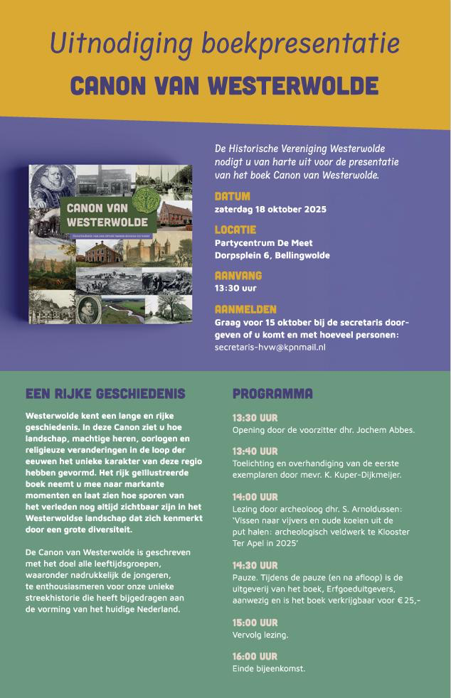 Uitnodiging ledenbijeenkomst en boekpresentatie Canon van Westerwolde